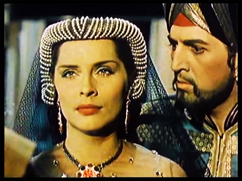 Я не знаю, какая киностудия снимала этот фильм, может быть арабская, или турецкая, потому что актрису, которая играла старшую сестру, мне после хотелось встретить в других фильмах, чтобы еще полюбоваться ее красотой, но так больше и не видела. По-видимому, она была талантливая актриса, так как после того, как ее героиня отдала свою красоту, мы видели только ее глаза, в которых отражался весь ее внутренний мир: то нежная любовь к сестре и страстная к своему жениху, то невообразимая боль и страдание, когда она осознает, что ее жених разлюбил ее и влюбился в ее младшую сестру. Постепенно этот образ восточной красавицы слился с образом Шехерезады из «Тысяча и одна ночь».